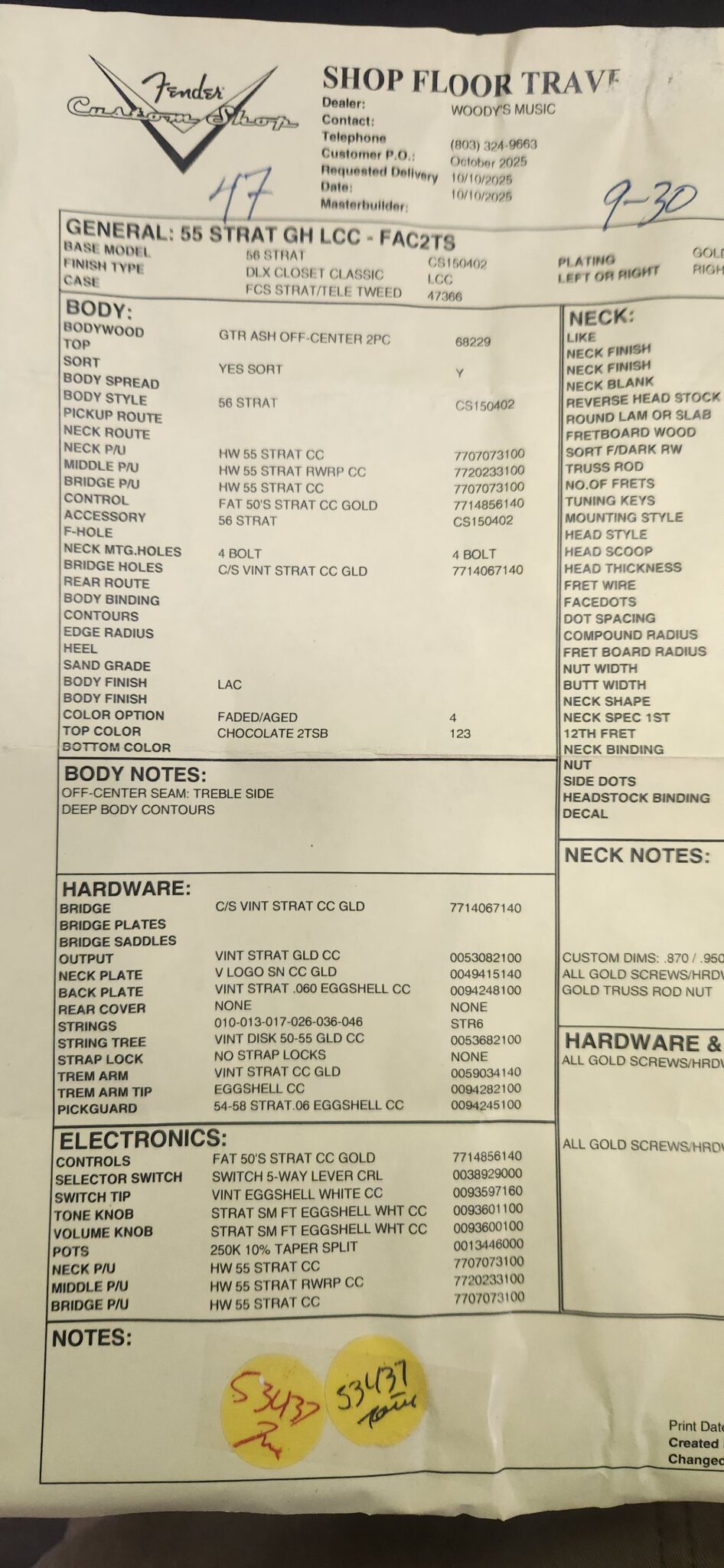 Woody’s Music of Tega Cay now has in a Brand New Fender Custom Shop 55 Strat LCC – FAC2TS. We are an authorized Fender Custom Shop Dealer! Free Shipping to USA Lower 48 States